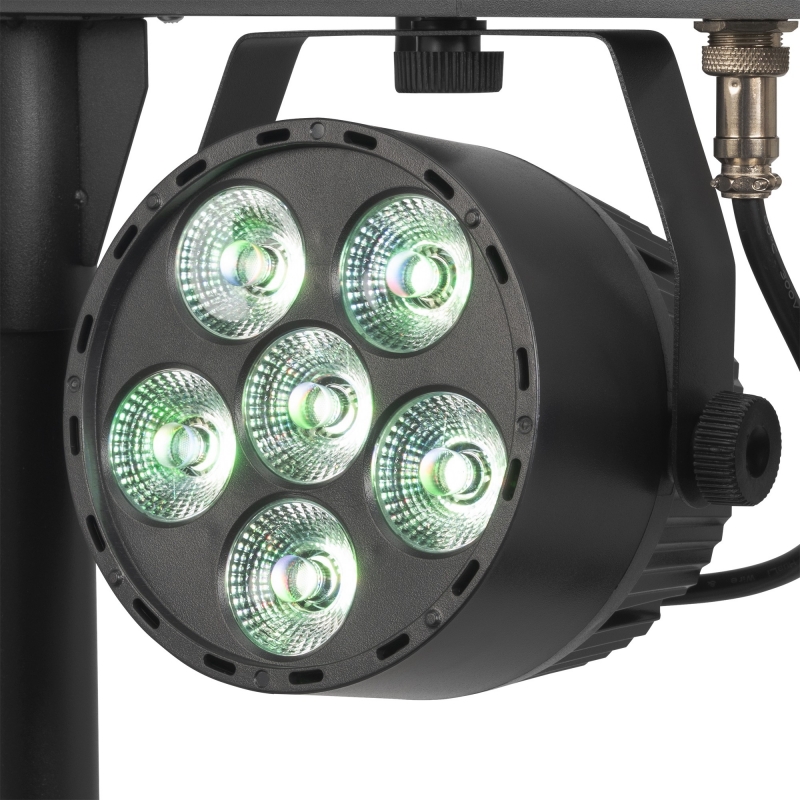 2 × PAR prožektoriai su ryškių spalvų maišymu
