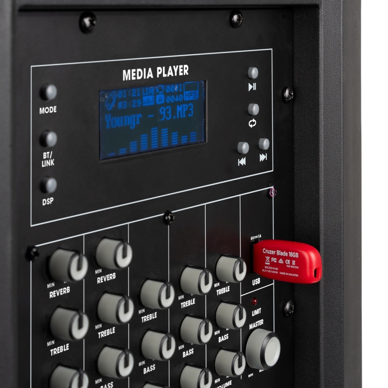 „Vonyx VX“ serija – tai kompaktiškų „Plug and Play“ koloninių garsiakalbių sistemų asortimentas, skirtas galingam, aukštos kokybės garsui su optimizuota sklaida skleisti. Įrengta „BT 5.0“ technologija, „VX“ serija leidžia sklandžiai transliuoti belaidį garsą, todėl puikiai tinka muzikos atkūrimui, pristatymams ir gyviems pasirodymams. Kiekvienas serijos modelis pasižymi lengvu dizainu, įmontuotu DSP, įvairiomis įvestimis, D klasės stiprintuvu ir maišytuvu, kad būtų lengva valdyti. Dėl išmanios sujungimo sistemos garsiakalbius lengva transportuoti ir greitai surinkti. „VX“ serija yra puikus pasirinkimas tiems, kuriems reikia profesionalios kokybės garso kelyje! 1800 W dviejų dažnių stiprintuvo kolonėlių sistema