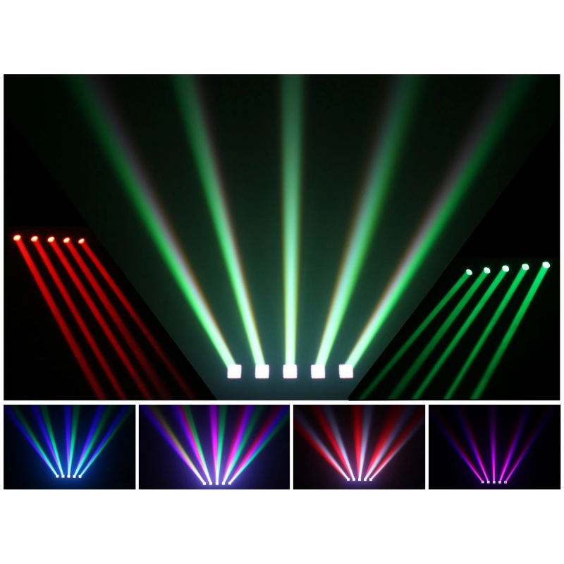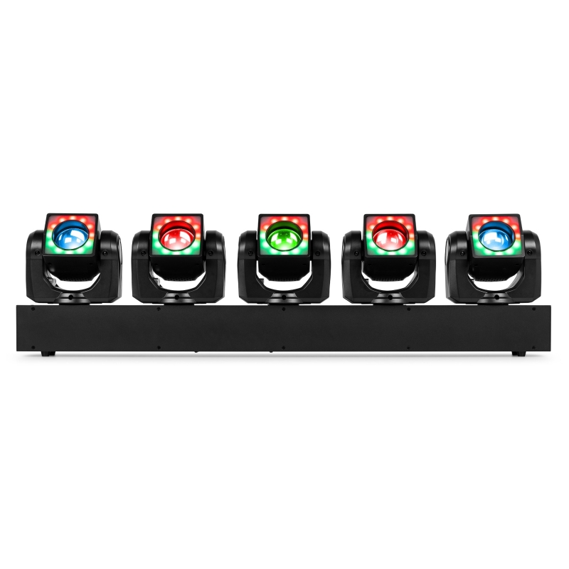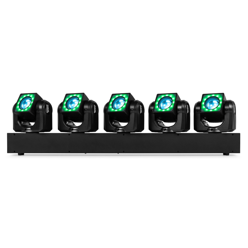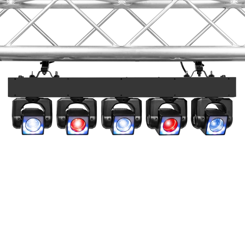 Kompaktiška apšvietimo juosta su 5 individualiai valdomomis judančiomis galvomis