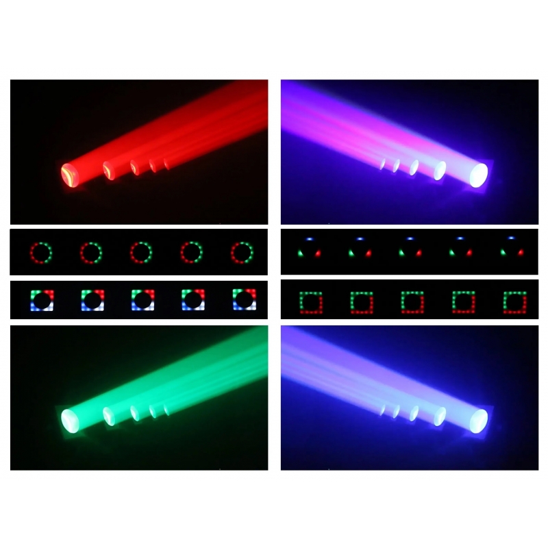 „Galaxy Moving Head Bar“ – tai kompaktiška šviestuvas su penkiomis nepriklausomai valdomomis judančiomis galvomis. Kiekvieną judančią galvą maitina galingas 40 W RGBW LED, kurį papildo 120 RGB LED pikselių žiede, kad būtų sukurtas įspūdingas šviesų šou. Sukurtas lankstumui, „Galaxy Moving Head Bar“ galima lengvai pritvirtinti prie apšvietimo stovo arba santvaros naudojant įmontuotą stulpo laikiklį ir omega laikiklius. Šis universalus įrenginys siūlo daugybę valdymo parinkčių, įskaitant DMX profesionaliems nustatymams, garso aktyvavimą ir savarankišką veikimą su patogia pagrindinio / pavaldinio funkcija. Dėl šio universalumo jis idealiai tinka didžėjams, grupėms, klubams, barams ir bet kokiai aplinkai, kurioje trūksta vietos.
