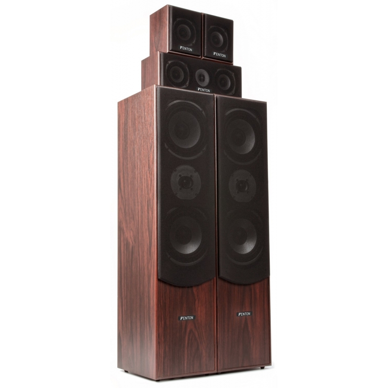 Dvi aukštos 3 juostų priekinės garso kolonėlės, trijų juostų centrinė garso kolonėlė ir dvi galinės garso kolonėlės sujungia bendrą 335 W RMS galią ir siūlo puikią namų kino patirtį. Dėl labai gerų garsiakalbių ir puikių savybių rinkinys turi nuostabų garsą. Juodos spalvos rinkinys pateikiamas su garsiakalbių laidais ir jį lengva prijungti prie erdvinio garso stiprintuvo. Dvi galines kolonėles taip pat tinka montuoti prie sienos.