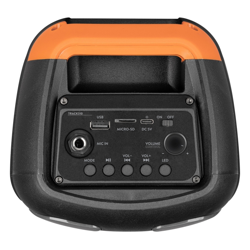 Šokite, dainuokite ir leiskite muzikai jus užvaldyti! Pakelkite savo vakarėlį į kitą lygį su belaide „Track310“ vakarėlių kolonėle, kurioje priekyje yra įspūdingas, pagal ritmą sinchronizuotas LED vakarėlio apšvietimas. Dėl įmontuotos įkraunamos baterijos, pridedamo mikrofono ir daugybės įvesties parinkčių: USB, „micro SD“ kortelės, „Bluetooth“ transliacijos ir įmontuotos mikrofono lizdo jungties, galite lengvai dainuoti kartu su visomis mėgstamomis dainomis. Taip pat galima belaidžiu būdu prijungti du „Track310“ garsiakalbius, kad sukurtumėte dar galingesnį stereo garsą. Idealiai tinka namų pramogoms, karaoke, mokykloms, vakarėliams ar daugeliui kitų progų. Vakarėlių garsiakalbis su USB/microSD medijos grotuvu