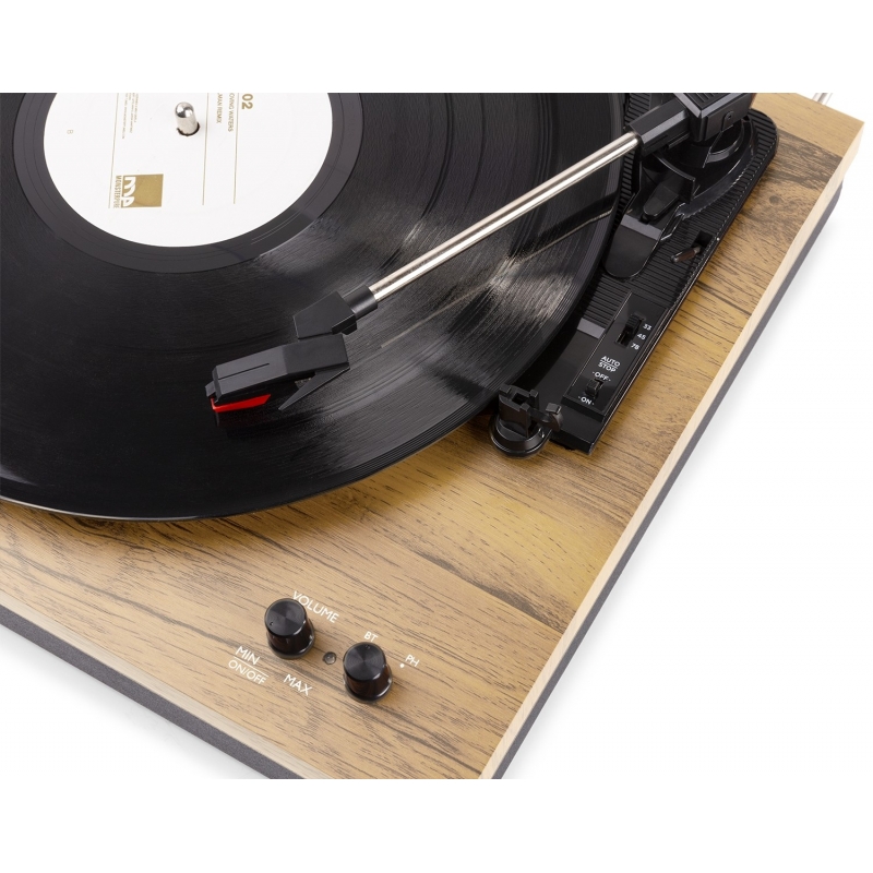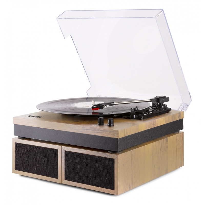 Įmontuotas stereo stiprintuvas Komplekte yra 2 viso diapazono stereofoninės garso kolonėlės Belaidės „BT“ technologijos naudojimas garso srautui perduoti 3 greičiai - įrašai 33 1/3, 45 ir 78 RPM Groja 7 ", 10" ir 12 "įrašus Keraminė stereo kasetė su rašikliu Diržu varomas patefono mechanizmas Rankinis arba automatinis stabdymo signalo svirtis (įjungimo / išjungimo jungiklis) Stereo RCA išvestis Prekės ženklas „Fenton“ Atkūrimo parinktys „BT Streaming“ Išvesties jungtys RCA Greičio nustatymai (RPM) 33, 45, 78 Išėjimo galia 100W Maitinimo šaltinis 100–240 V AC 50/60 Hz (12 V adapteris) Matmenys (I x P x A): 361 x 262 x 465 mm Svoris (kg) 5.4 Spalva: Šviesus medis
