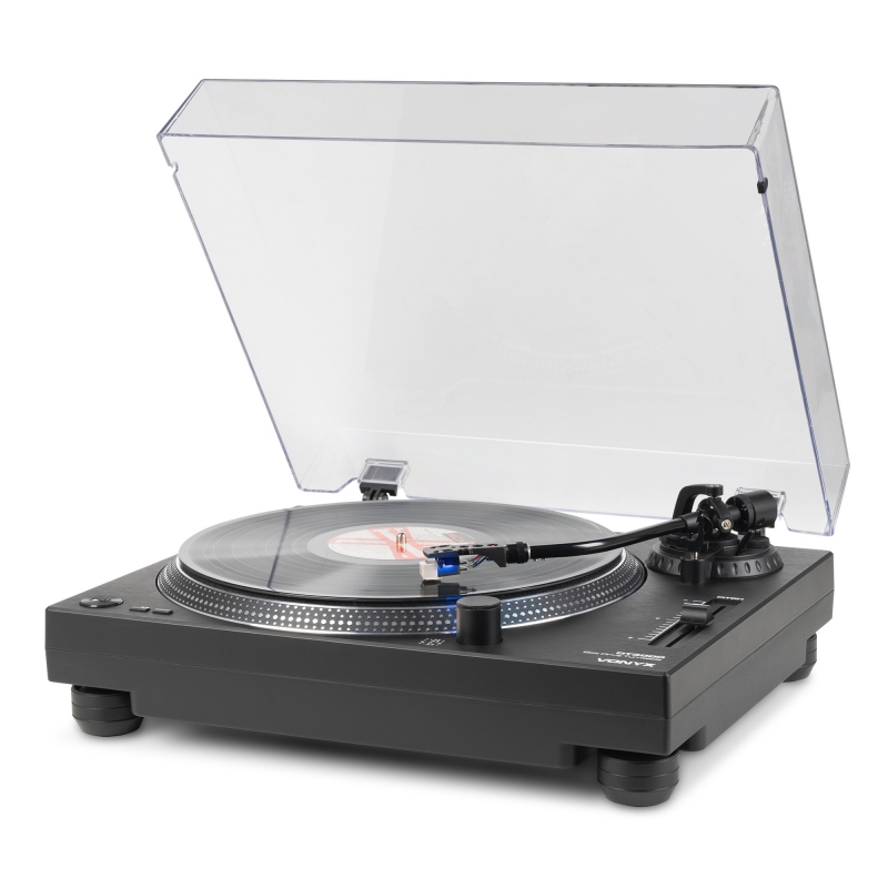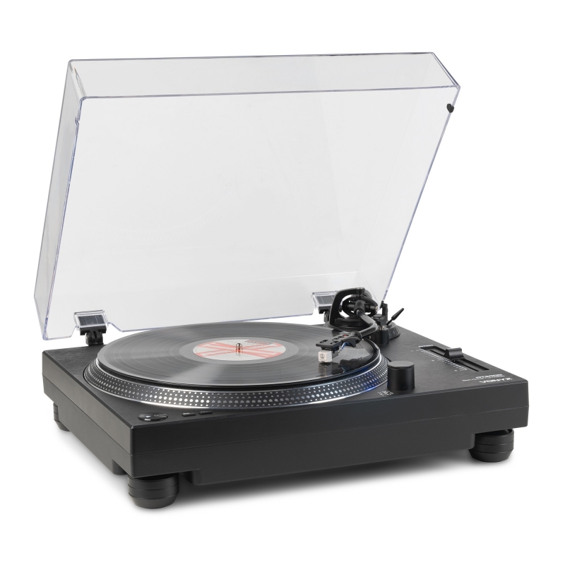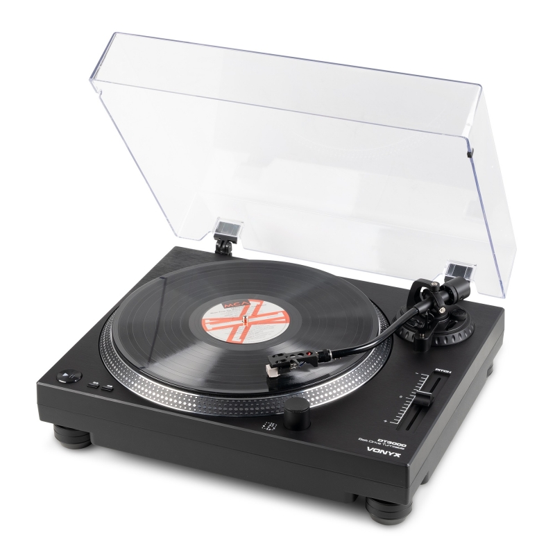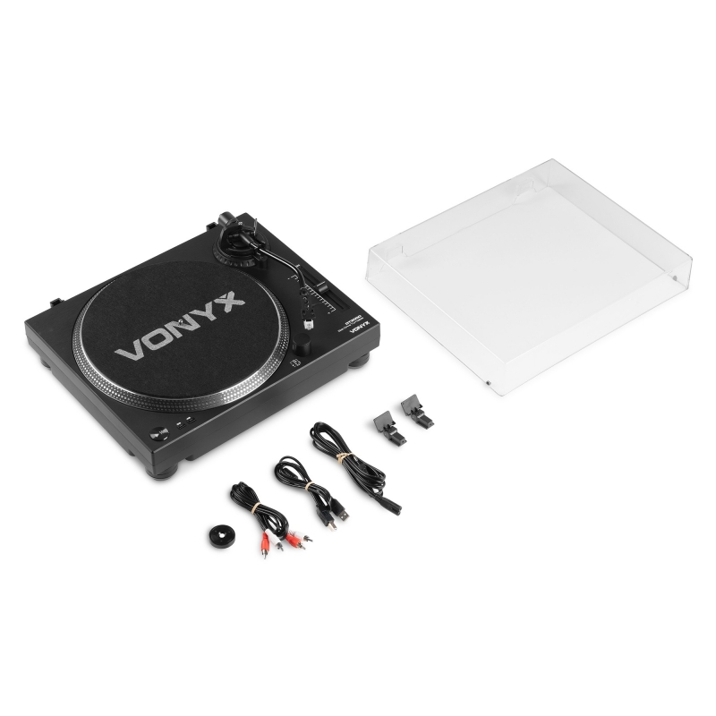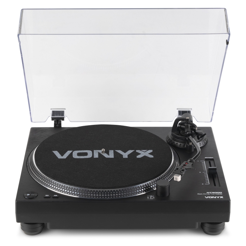 „Vonyx DT3000“ – stilingas ir patikimas patefonas su diržine pavara, kuriame dera vintažinis žavesys ir modernus funkcionalumas. Varomas precizinio diržinės pavaros variklio, DT3000 užtikrina mažą vibraciją ir stabilų sukimąsi esant 33⅓ ir 45 aps./min., išsaugodamas jūsų įrašų charakterį ir kokybę. Lengvas aliuminio diskas ir neslystantis S formos tonarmas garantuoja gryną, subalansuotą garsą su minimaliais iškraipymais. Šis patefonas yra paruoštas groti su iš anksto įdiegta MM galvute ir turi įmontuotą fono stiprintuvą, todėl jį lengva tiesiogiai prijungti prie maitinamų garsiakalbių, garso sistemų ar stiprintuvų, nenaudojant jokios papildomos įrangos.