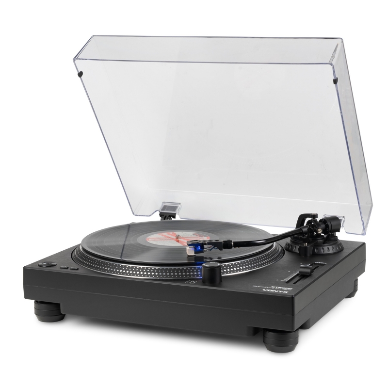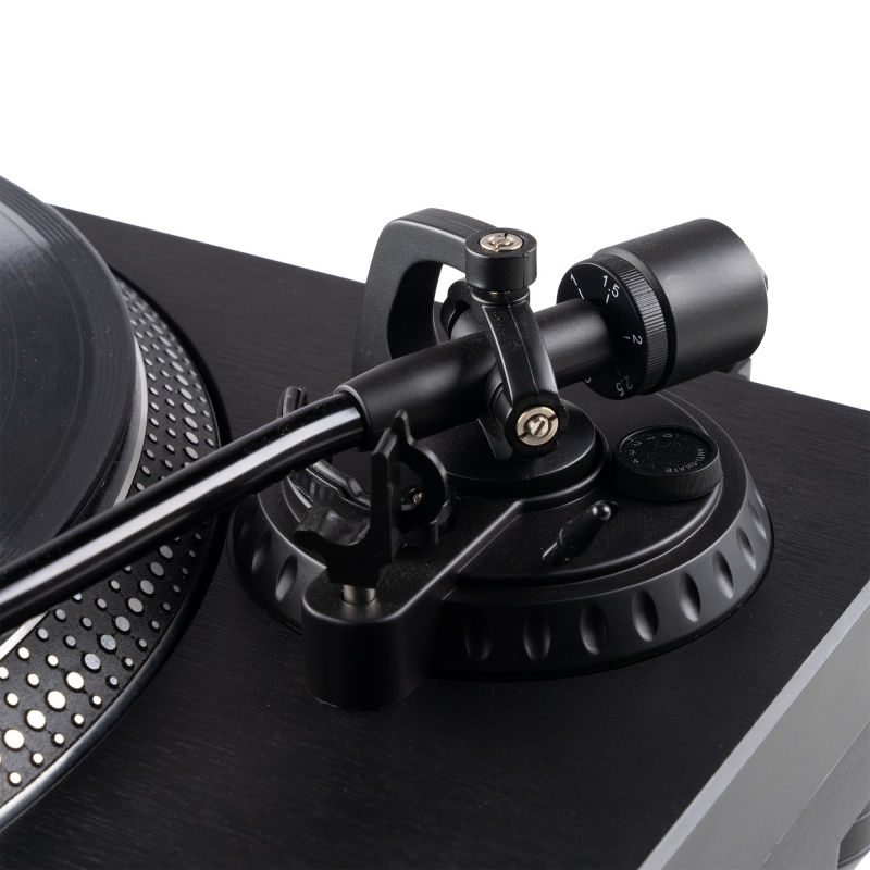 DT6000 – tai profesionalios klasės tiesioginės pavaros patefonas, skirtas sklandžiam veikimui, aukštos kokybės garsui ir moderniam ryšiui. Jo šerdis – galingas variklis su didelio sukimo momento tiesiogine pavara (daugiau nei 3,6 kg/cm), užtikrinančiu greitą paleidimą ir stabilų disko sukimąsi tiek 33⅓, tiek 45 aps./min. greičiu. Mėgaukitės sodriu analoginiu garsu su stabilumu ir tikslumu, kurio reikalauja tikri vinilo entuziastai. Įrengtas patvariu S formos tonarmu, neslystančiu tonu ir iš anksto įdiegta judančio magneto (MM) kasete, DT6000 užtikrina puikų sekimą ir šiltą, detalų garsą. Be to, įmontuotas foninis stiprintuvas suteikia galimybę tiesiogiai prijungti prie garsiakalbių, maišytuvų ar stiprintuvų – nereikia jokio išorinio stiprintuvo. Integruota USB išvestis leidžia lengvai konvertuoti vinilo plokšteles į skaitmeninius garso failus, puikiai tinkančius nešiojamam klausymuisi ar archyvavimui.