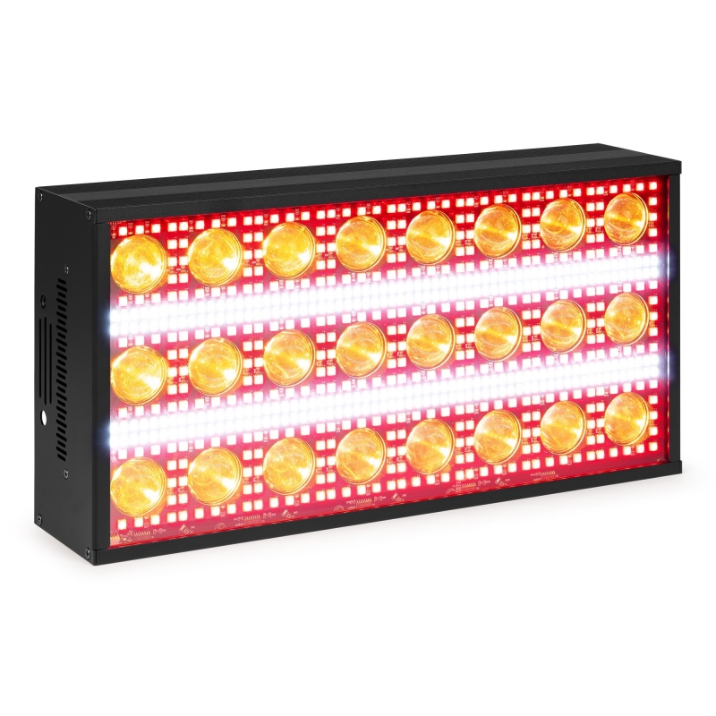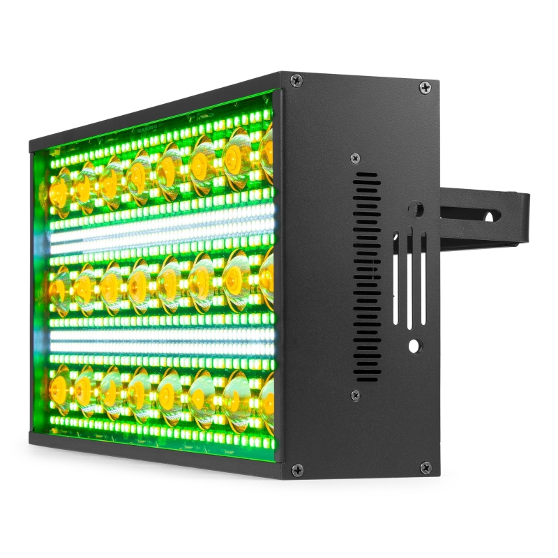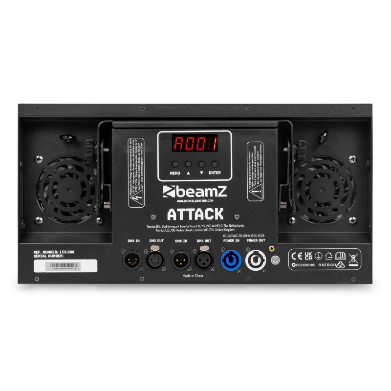„Attack Combi Strobe“ – tai galingas 3 viename apšvietimo efektas, kuriame viename kompaktiškame įrenginyje sujungiamas stroboskopinis, akinančioji ir plovimo šviesos funkcijos. Šis universalus prietaisas, aprūpintas 384 didelio intensyvumo RGB šviesos diodais, 256 šaltai baltais šviesos diodais ir 24 šiltai baltais šviesos diodais, esančiais už tikslių lęšių, sukuria dinaminius stroboskopinius efektus, ryškių spalvų maišymą ir akinančią akinančioji šviesa efektą. Naudodami kelių zonų valdymą, galite sukurti stulbinančius chase efektus, o DMX, pagrindinis/pavaldinis ir autonominis režimai suteikia maksimalų lankstumą. Puikiai tinkantis scenoms, klubams ir renginiams, „Attack Combi Strobe“ garantuoja įspūdingą vaizdinę patirtį. DJ efektų stroboskopas