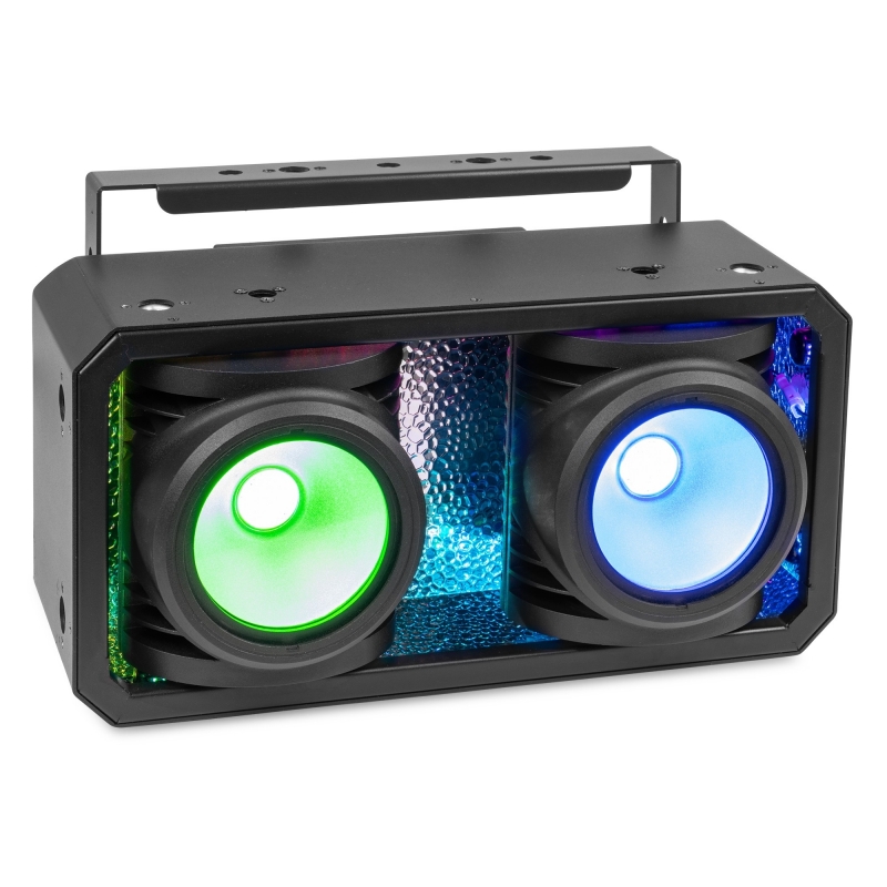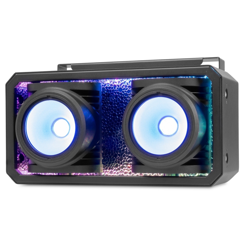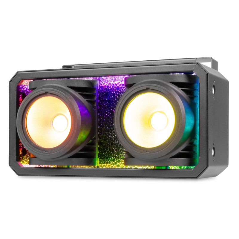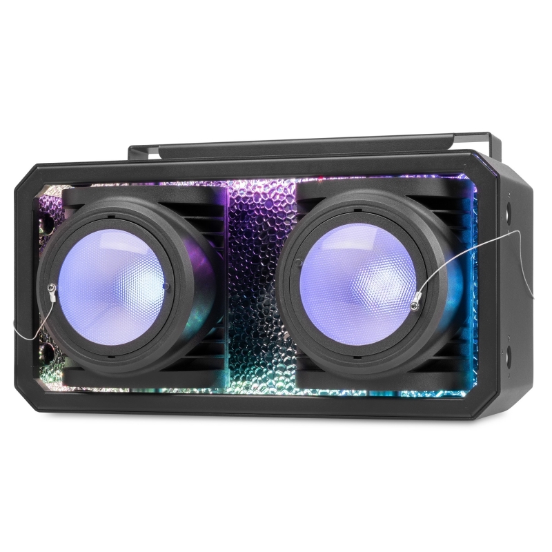 IP65 apsaugos klasės SB250IPFC scenos šviestuvas yra galingas RGBAL LED šviestuvas, pasižymintis tvirtu aliuminio dizainu ir COB (Chip-on-Board) šviesos diodais, kurie savo korpuse sujungia du efektus. Be standartinio scenos šviestuvo, šis šviestuvas taip pat gali būti naudojamas kaip autentiškas scenos šviestuvo efektas su ryškiu RGB fonu. Maišant raudoną, žalią ir mėlyną spalvas, galima išgauti bet kokią spalvą, o gintaro ir gelsvai žalios spalvos leidžia išgauti gryną baltą spalvą arba paryškinti bet kurią kitą spalvą. Aukšto dažnio LED pritemdymas užtikrina sklandų išblukimą ir nemirgantį veikimą po kamera. SB250IPFC atitinka įprasto auditorijos šviestuvo akinantį šviesos srautą ir gali būti valdomas atskirai arba tiesiogiai per DMX. Šviesos diodų tarnavimo laikas yra iki 60 000 valandų. 2 x 100 W RGBAL COB šviesos diodai